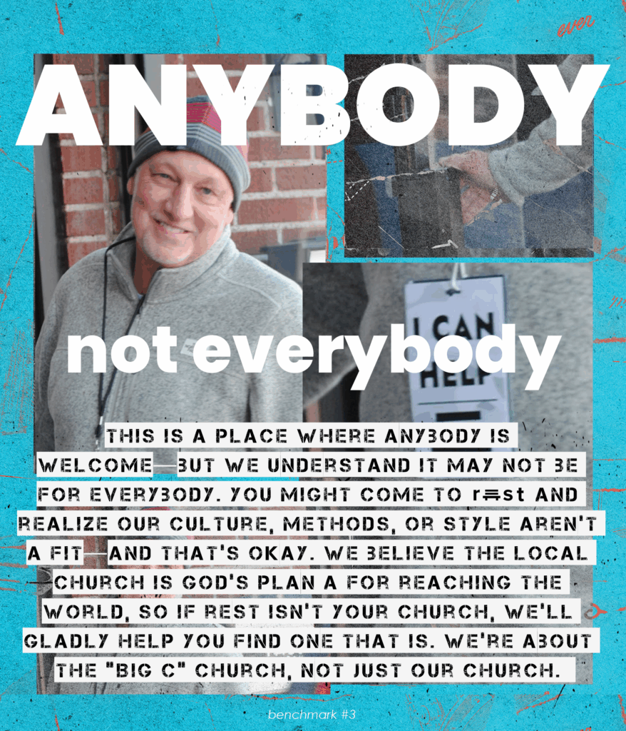 At rest, we know we won’t be for everybody—while we are for anybody. That’s why we love and support the big “C” Church: all Jesus-preaching, Bible-believing churches. So, if rest isn’t the right fit for you, no problem! Check out one of our sister churches below. Just go to church—we don’t care where, just go somewhere!